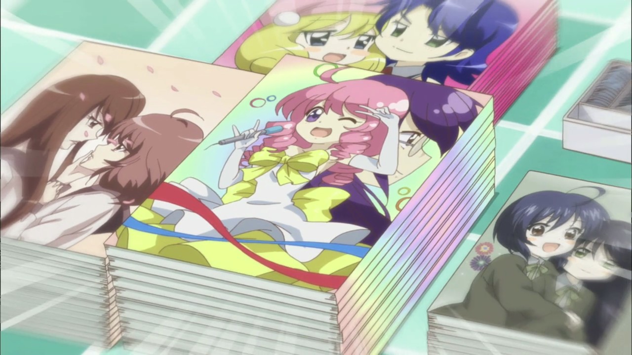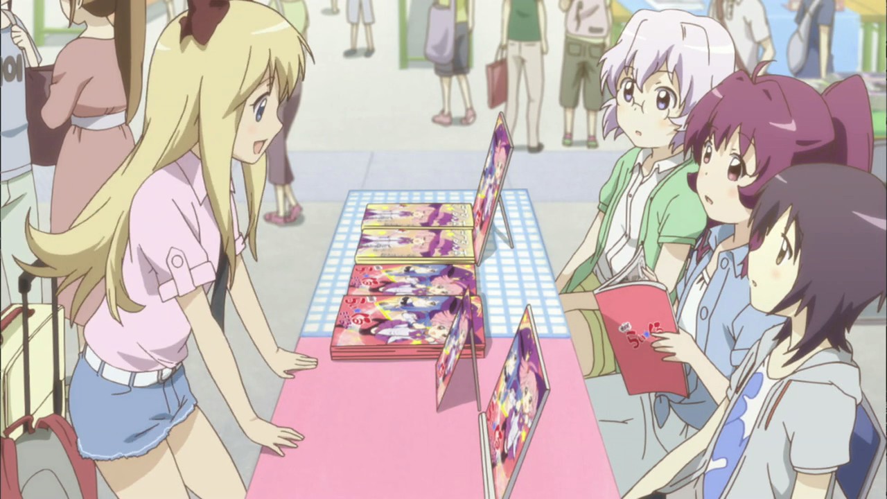 И, кстати, там продают додзинси по малоизвестному сериалу Yuru Yuri (см. крайний левый столик). Рекурсия такая рекурсия.