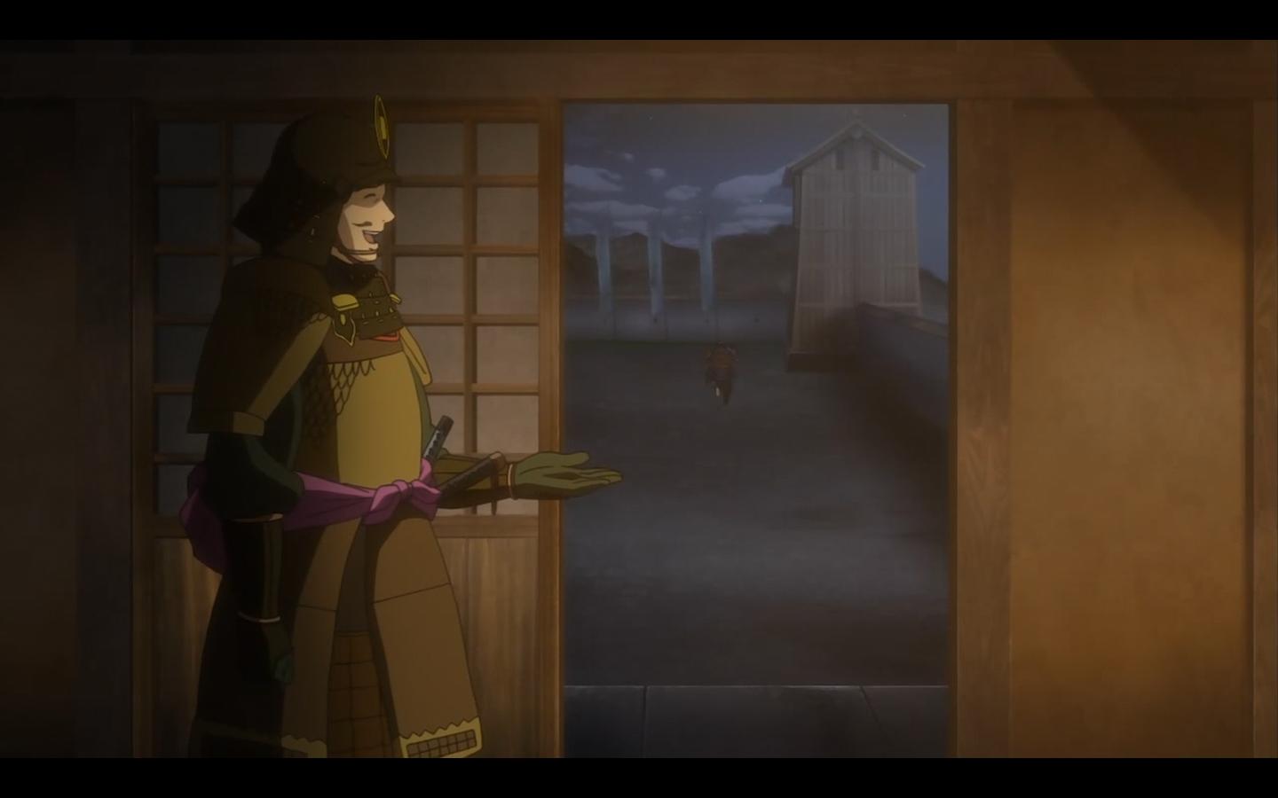 Офигенная сцена - Соэки пытается склонить Фудзитаку Хосокава к мятежу. Кстати, у нас тут март 1582-го, и Хонно-дзи всё ближе.