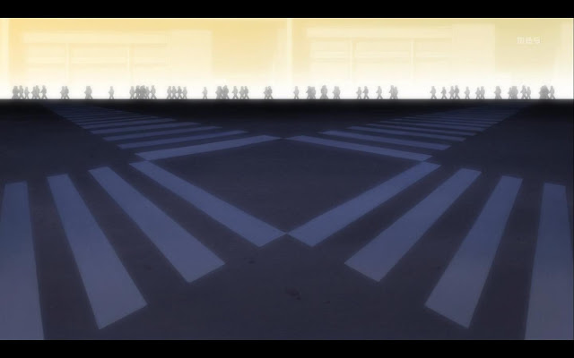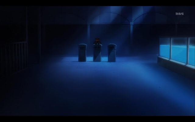 Во-первых: оба монолога Санетоси, в начале и в финале эпизода, являются неприкрытым и диким стёбом над любимой идеей Хидеяки нашего Анно. Оно, конечно, не то что бы прямо один в один комплементация, но взять и поручить главному демону речь о "людях, запертых в коробках и потому страдающих", а потом взять и нарисовать эти коробки буквально - это надо быть о-о-очень развесёлым троллем.