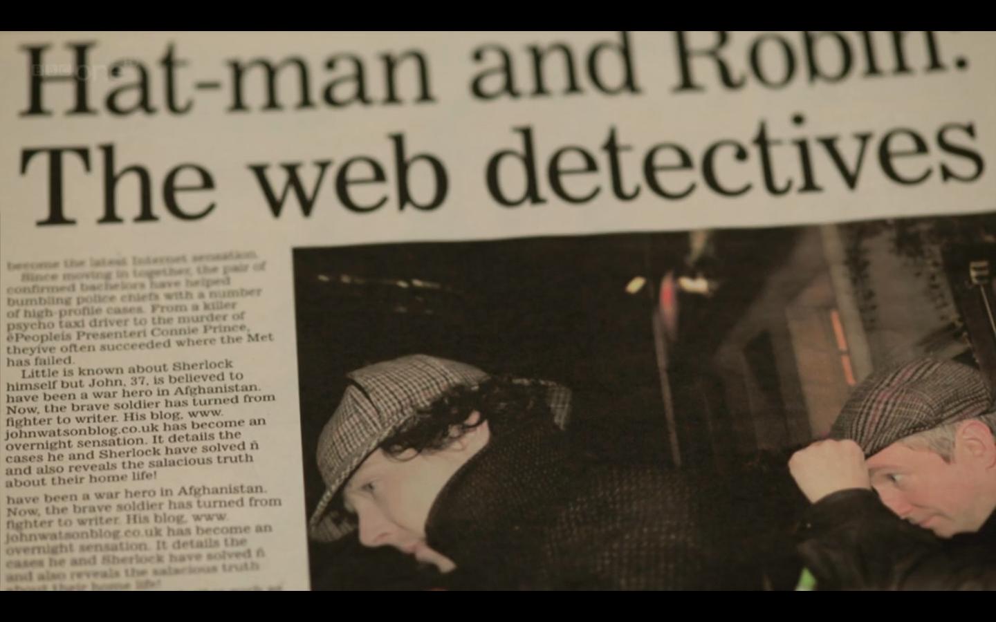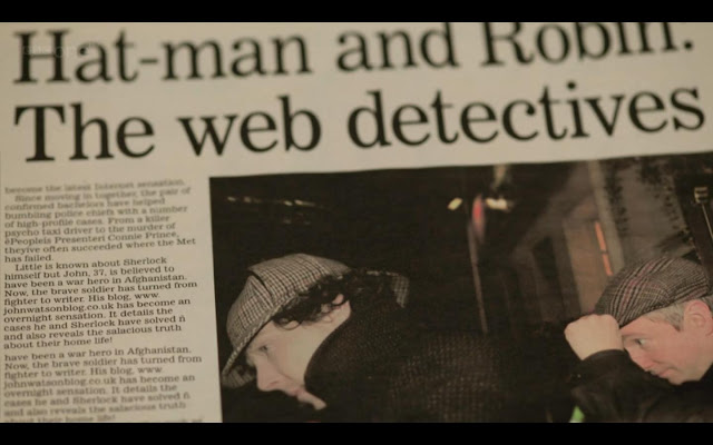 С газетными заголовками - тоже прекрасная находка и чудеснейший прикол над классическими головными уборами Холмса и Ватсона.