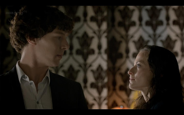 Первый из двух лучших моментов серии: Шерлок смотрит - и не в состоянии "прочесть" Ирен.